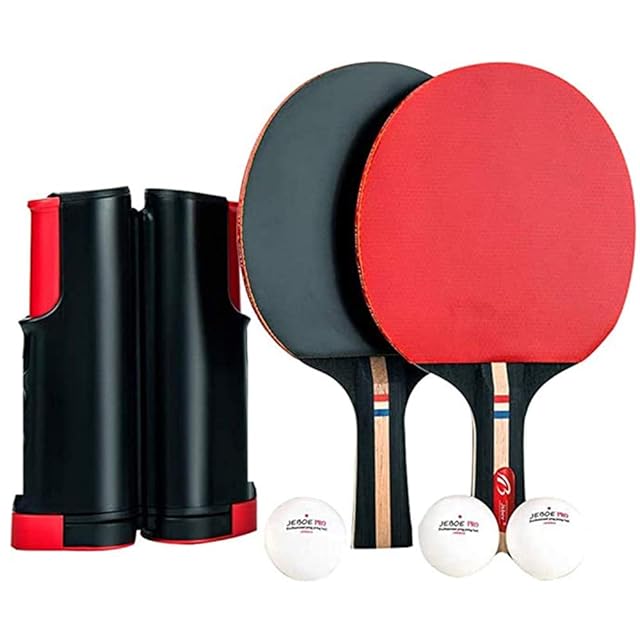 JEBOR 卓球ネット セット ラケット 卓球台 (ラケット×2本 伸縮ネット ボール×3個) ハンドバッグ き アウトドア レジャー 職場で