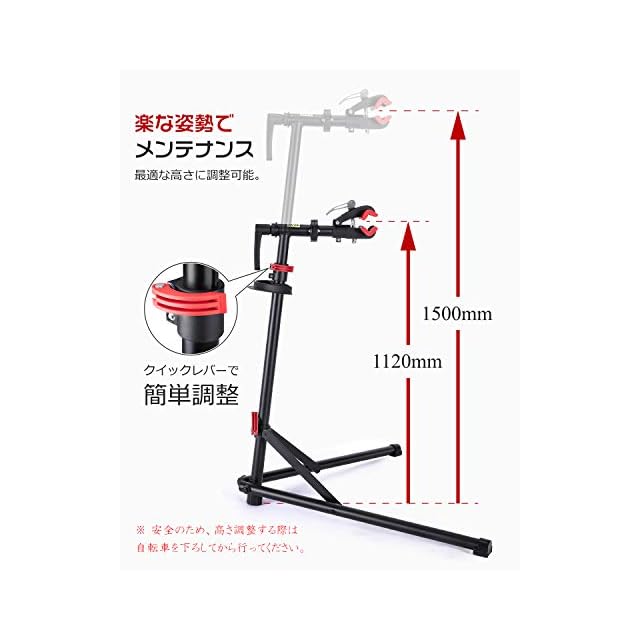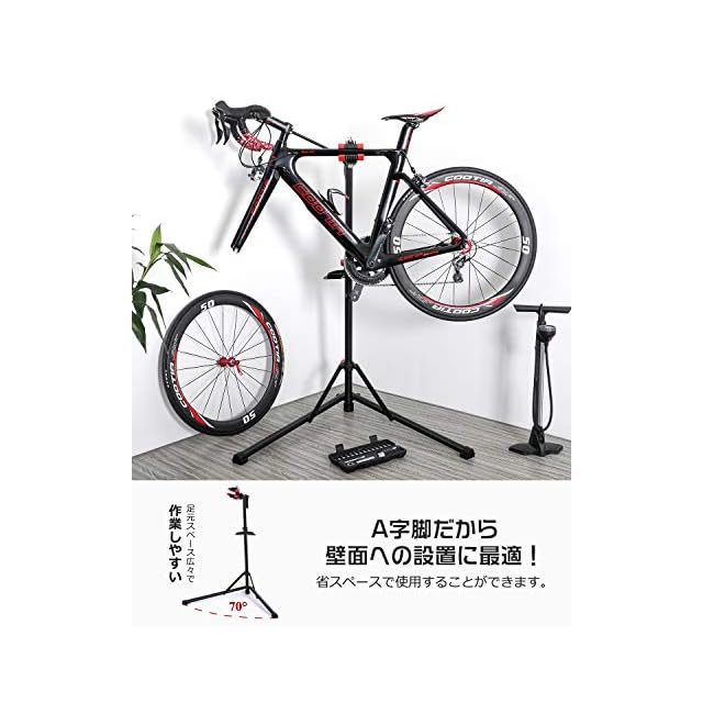 商品名:CXWXC 自転車 メンテナンススタンド ワークスタンド ロードバイク スチール製 高さ/角度調節可 折りたたみ式 ディスプレイスタンド 工具トレー/ハンドル支えバー付 ブラック(CX-C10BK)