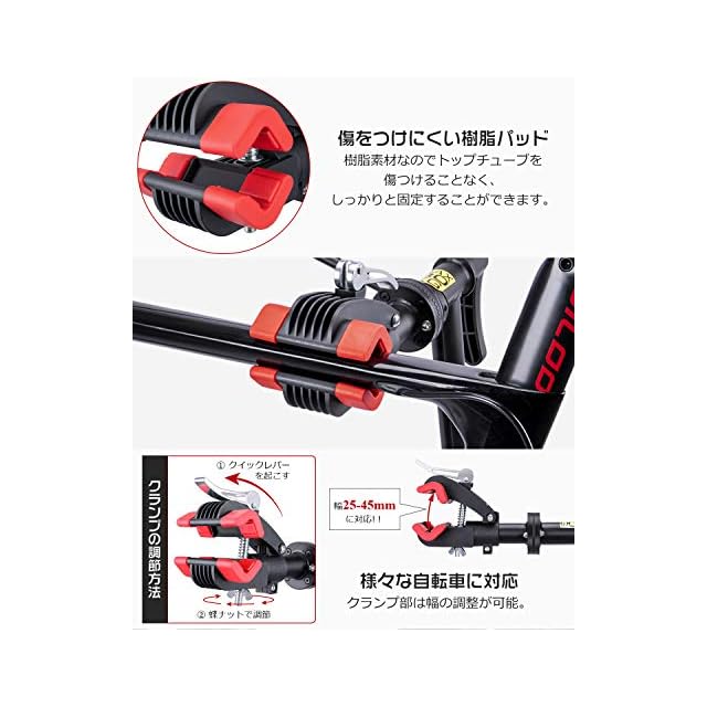 【様々な自転車に対応】クランプ部は約20~45mmまでの太さに対応しており、様々な自転車に対応しています。