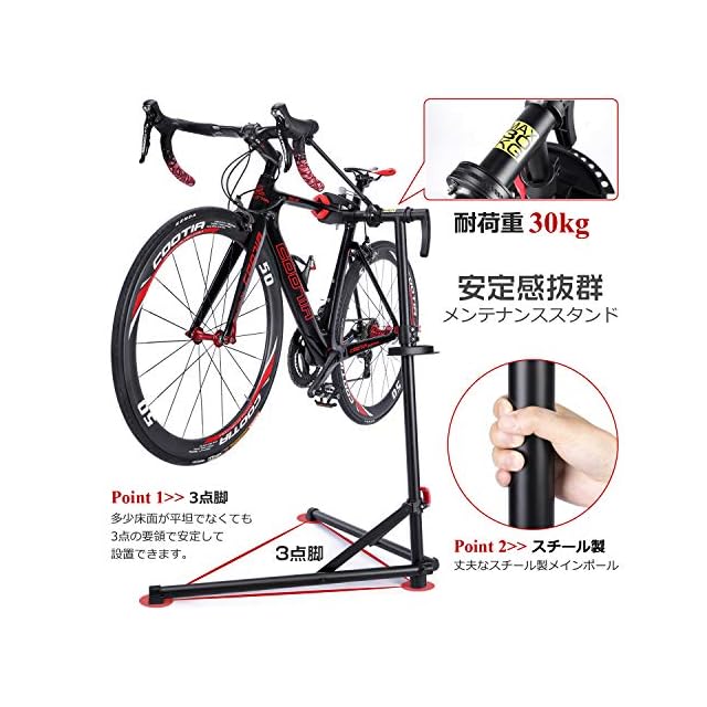 【安定感抜群】安定感のある3点脚と丈夫なスチール製メインポールでしっかりと車体を支えます。