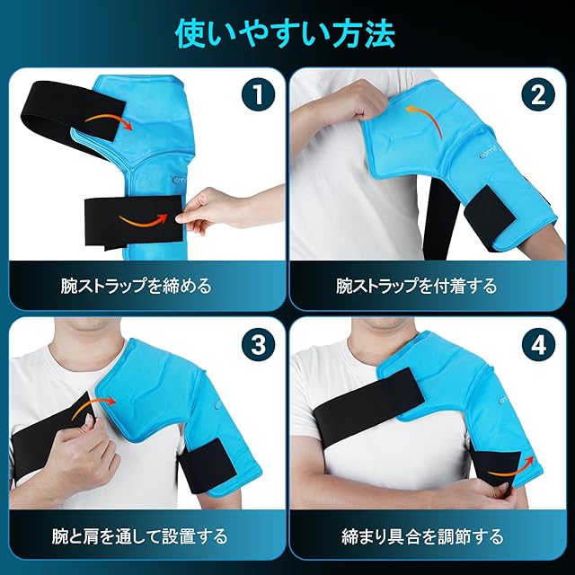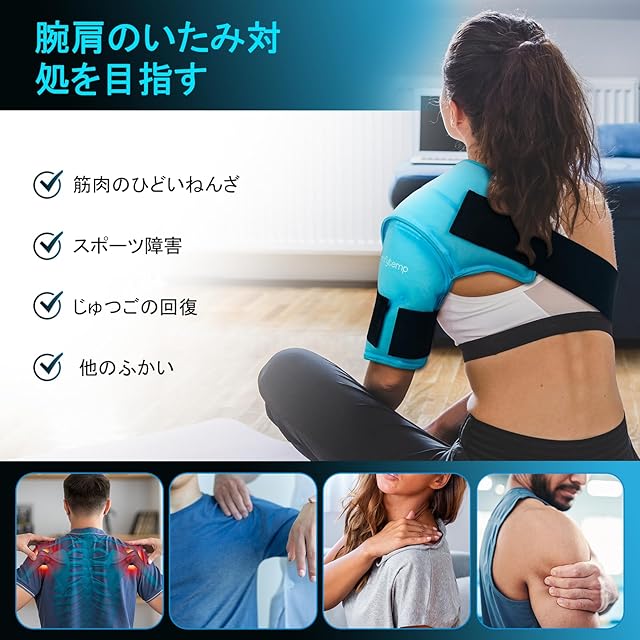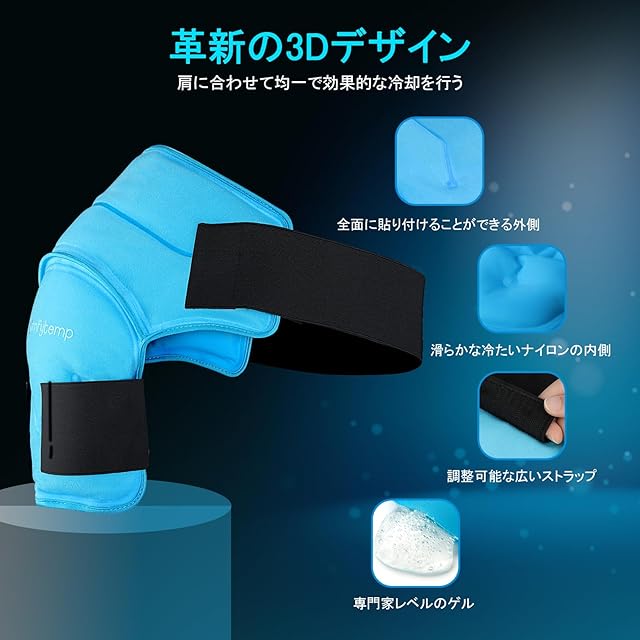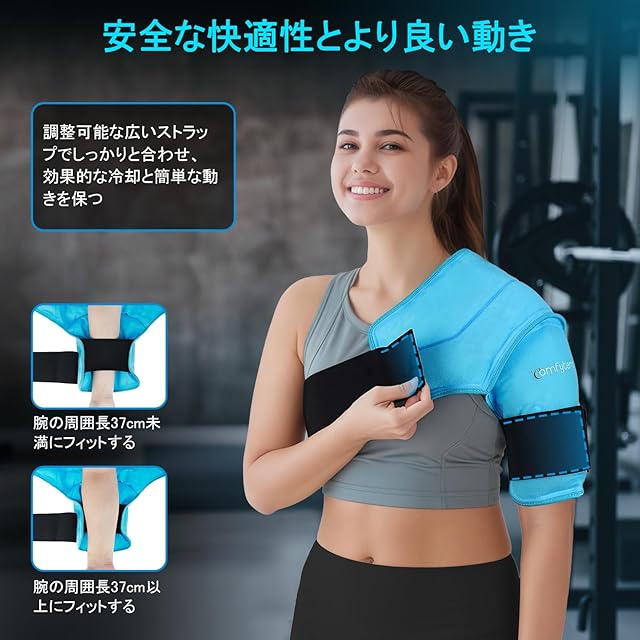 商品名:Comfytemp 肩用アイシング アイスバッグ 氷嚢の代わりに 氷は不要 冷感ジェル アイシングサポーター肩用 冷温両用 電子レンジ加熱可 サイズ調節可能 繰り返し使える 大型ジェルアイスパック 水漏れ防止 結露なし 男女兼用