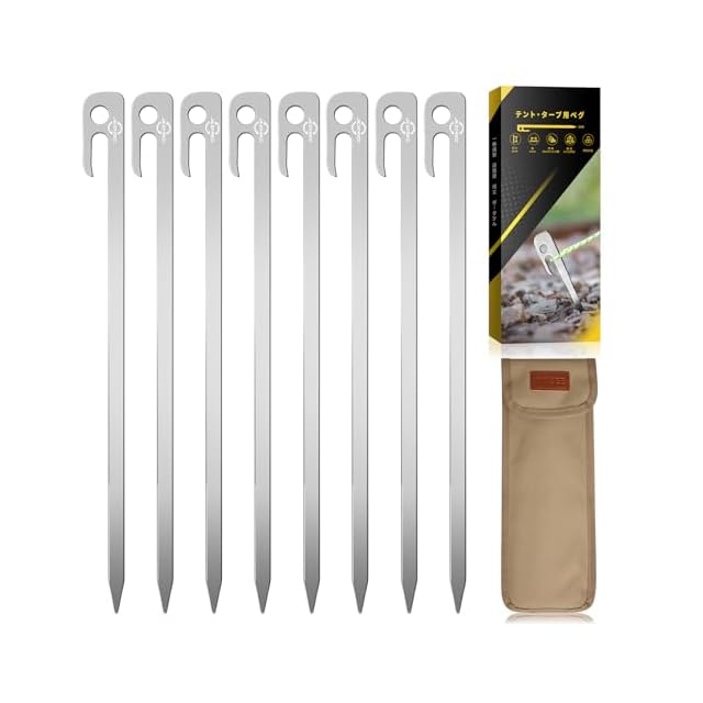 商品名:JKAYRKC ペグ 28cm 8本 キャンプ テント ステンレス鋼420 一体成型 超軽量 薄型 ソリッドステーク 高強度 タープ固定用 収納袋付 岩場 砂浜 砂利 設営用具 アウトドア