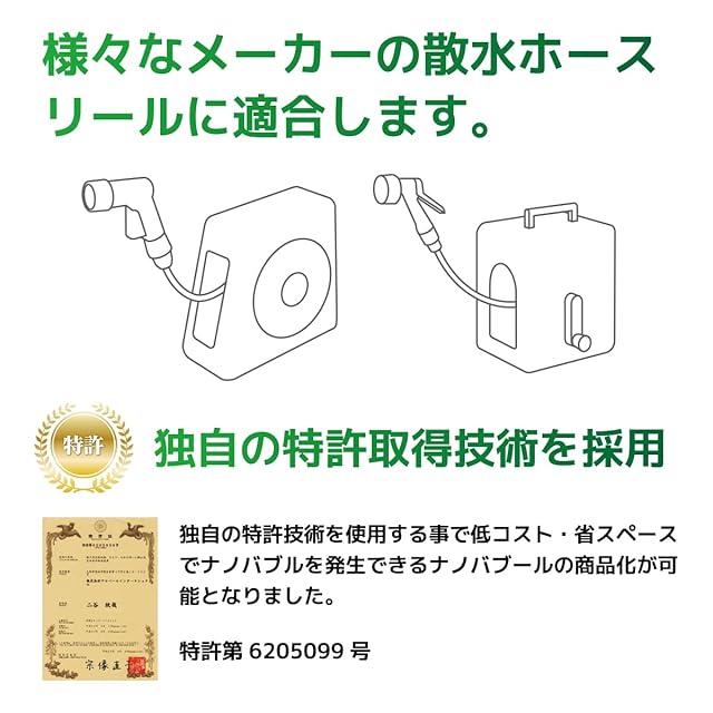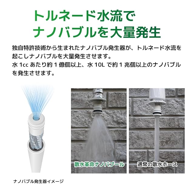 今ある散水ホースに取り付けるだけで大量のナノバブルが発生!