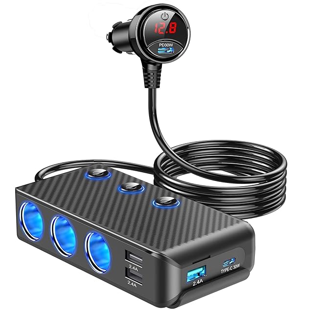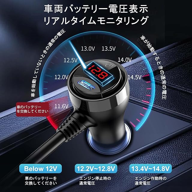 【LED電圧表示と独立電源スイッチ】アップグレード後のシガレット点火器usb充電器はリアルタイムLED電圧表示機能を有し、自動車電池の出力を監視でき、リアルタイムで自動車電池の健康状態を理解でき、運転時の問題を回避する。また、12 vソケットスプリッタは、各タバコスタンドソケットに対して3つの独立したオン/オフスイッチを備えている。ボタンを押すだけで開閉でき、他の充電デバイスに影響を与えることなくデバイスの寿命を延長できます