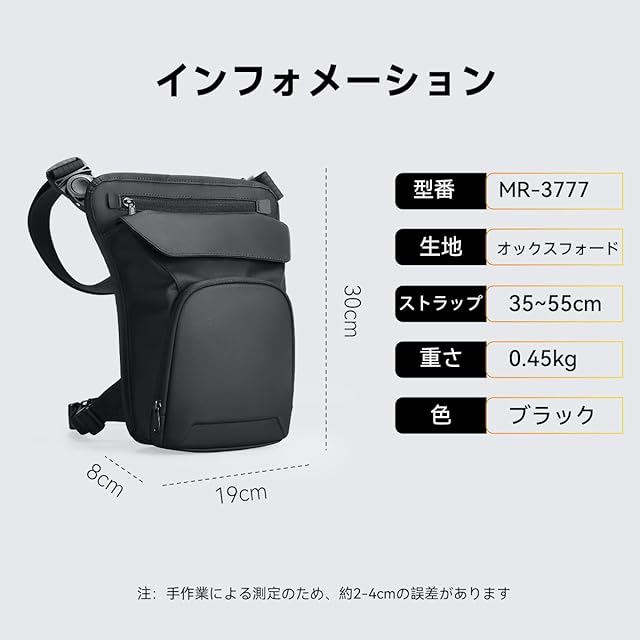 商品名:レッグバッグ 大容量 バイク用 ペットボトル収納可 軽量 多機能 3室構造 サイズ調整可能 バイクホルスターバッグ アウトドア ライディング