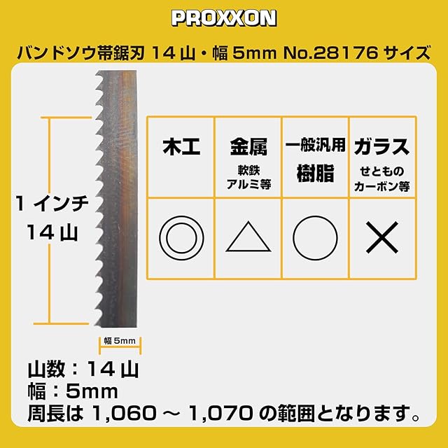 商品名:プロクソン(PROXXON) 交換用バンドソウ鋸刃 14山 幅5mm 1本 【木材の直線切用 ミニバンドソウ標準帯鋸刃】 No.28176