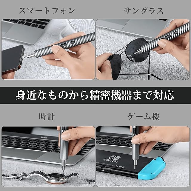 【お子様や女性にも安心】本体の重さはわずか54g(およそ卵1個分)と超軽量設計のため女性でも安心して使用できます。ボタン操作で正回転、逆回転、LEDライトモード、3モードの切り替えができるので、お子様でも直感的に操作してDIYを楽しめます。最大電動トルク:0.25 N.m 手動トルク:0.35N.mとパワフルなためドライバーにかける力も少なく使用者に優しい設計となります。最大回転数は毎分200回転と高出力を実現できるため、あらゆる組立分解の作業効率を上げることができます。