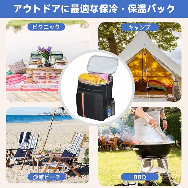 【大容量で多彩なシーンに対応】容量は20リットルとたっぷり。キャンプ、BBQ、ピクニック、お花見、パーティー、ショッピング、運動会、釣り、スポーツ大会、アウトドア活動など、さまざまなシーンで使えるソフトクーラーボックスです。