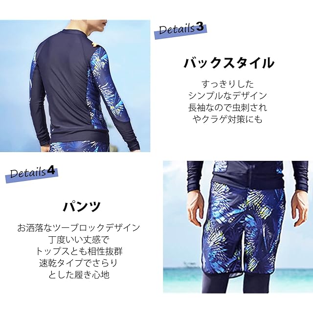 【セット内容】ラッシュガード、レギンス、サーフパンツ。最適の機能性長袖ラッシュガードパーカー、吸汗速乾通気のドライ繊維、激しい運動の後もさらっとした着心地!サーフパンツとレギンスセット、レギンス付き足首まであるので、虫刺されやクラゲ対策、擦り傷などの外傷対策にも!