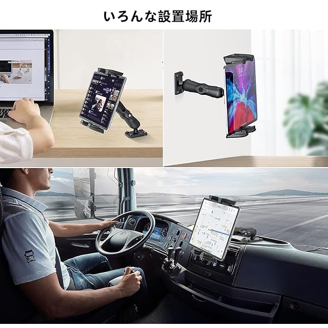 【適用場所】このタブレットスタンドは車用だけなく、壁、机、オフィス、バスルームなど場所への設置に非常に適しています。固定点が4つあるので、タブレットホルダーの落下を気にする必要がありません。