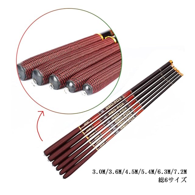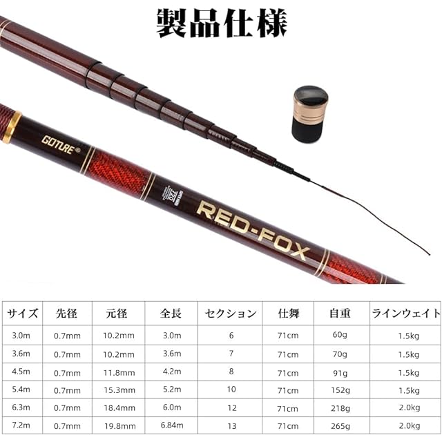 商品名:Goture コンパクト延べ竿 渓流竿ロッド 万能竿 硬調 釣り竿 超軽量 河川 堤防 湖畔 渓流 5.4M 初心者用