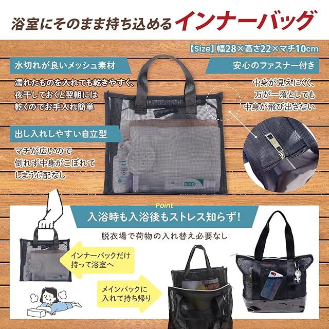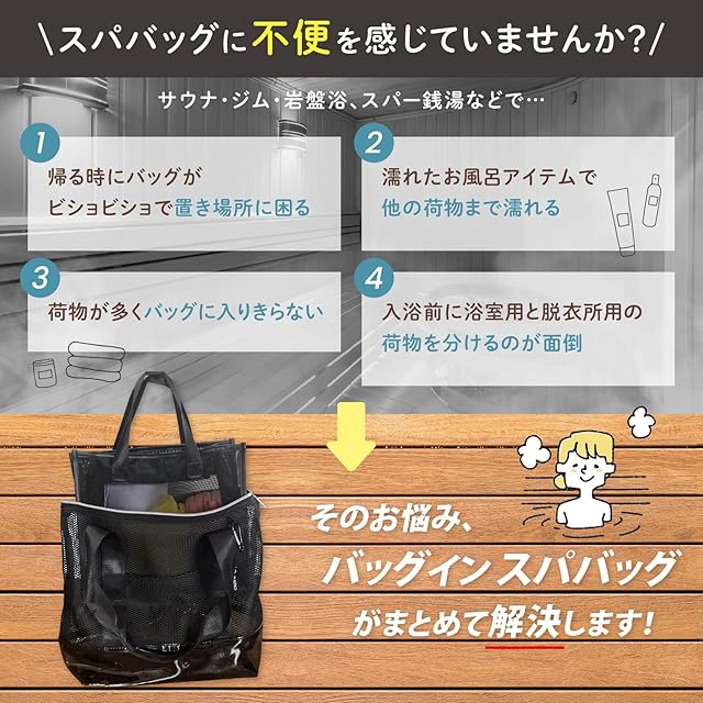サウナー考案のスパバッグ。バッグインバッグだから行きも帰りも、脱衣場も浴場のお悩みを解決します。