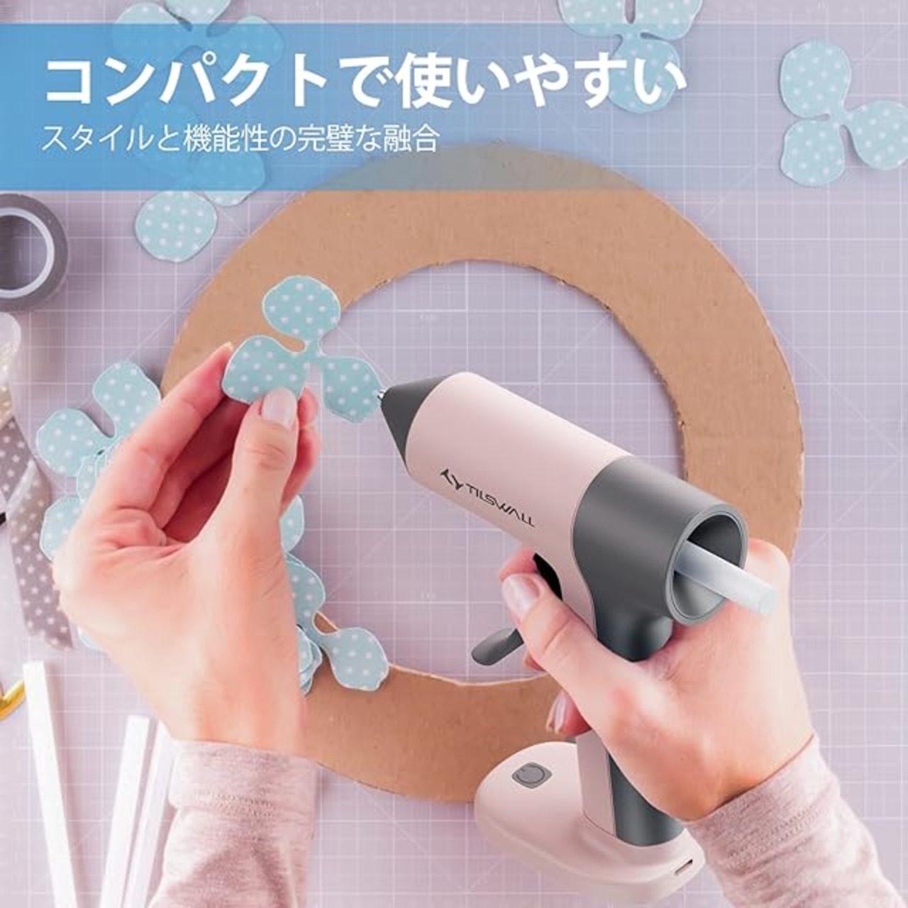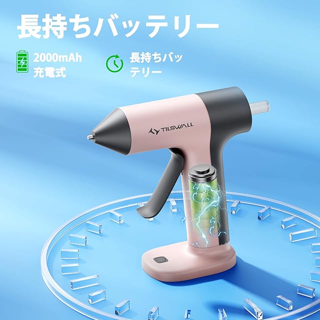 Tilswall コードレスグルーガン 充電式グルーガンとスティックセット 2000mAh タイプ C クラフト 急速 30 秒予熱 スマート電源オフ プレミアムグルースティック 20 本 DIY に最適 ピンク | Trend Design BASE店