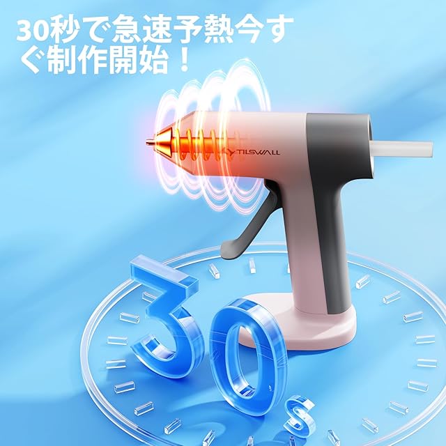 商品名:Tilswall コードレスグルーガン 充電式グルーガンとスティックセット 2000mAh タイプ C クラフト 急速 30 秒予熱 スマート電源オフ プレミアムグルースティック 20 本 DIY に最適 ピンク
