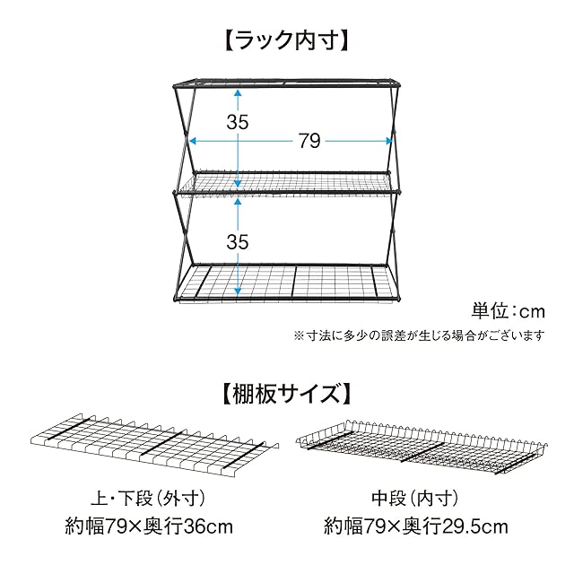 棚板サイズ:[上段・下段の外寸]約幅79×奥行36cm [中段の内寸]約幅79×奥行29.5cm