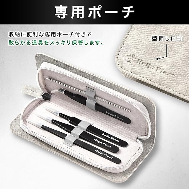 Kaiju Plant ピンセット 4種 + 根かき棒 植替え 美しく仕上げる 多肉 アガベ サボテン 園芸 DIY ポーチ付き ステンレス