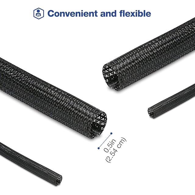 JOTO ケーブル収納スリーブ 長さ約8M 直径1.3cm DIY切断可能 PET素材、家庭用/オフィス用 -ブラック