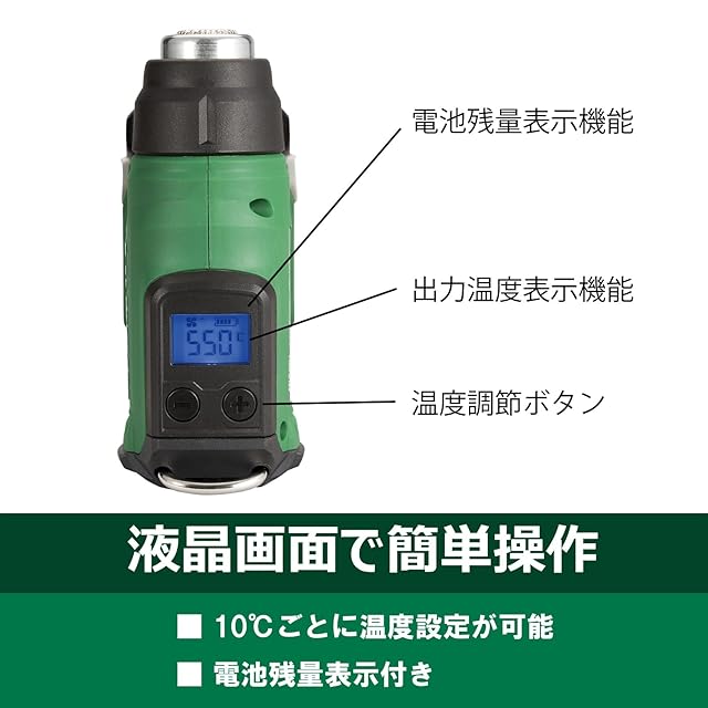 コードレス&液晶画面で使いやすさ抜群。10℃ごとに調整でき、液晶表示で出力温度が確認できます。作業に合わせて簡単に適正温度を設定可能です。